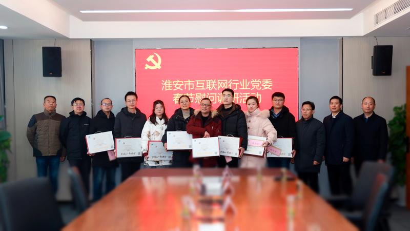 为深入贯彻落实党的二十大关于“加强新经济组织、新社会组织、新就业群体党的建设”的重要决策部署,扎实做好互联网行业和新业态新就业群体党建工作,1月16日下午,淮安市委宣传部副部长、网信办主任、市互联网行业党委书记曾业桃带队赴互联网企业开展调研慰问。市委网信办副主任、市互联网行业党委副书记孙一萌,淮安经济技术开发区党工委委员、党群工作部部长葛玉海等参加活动。