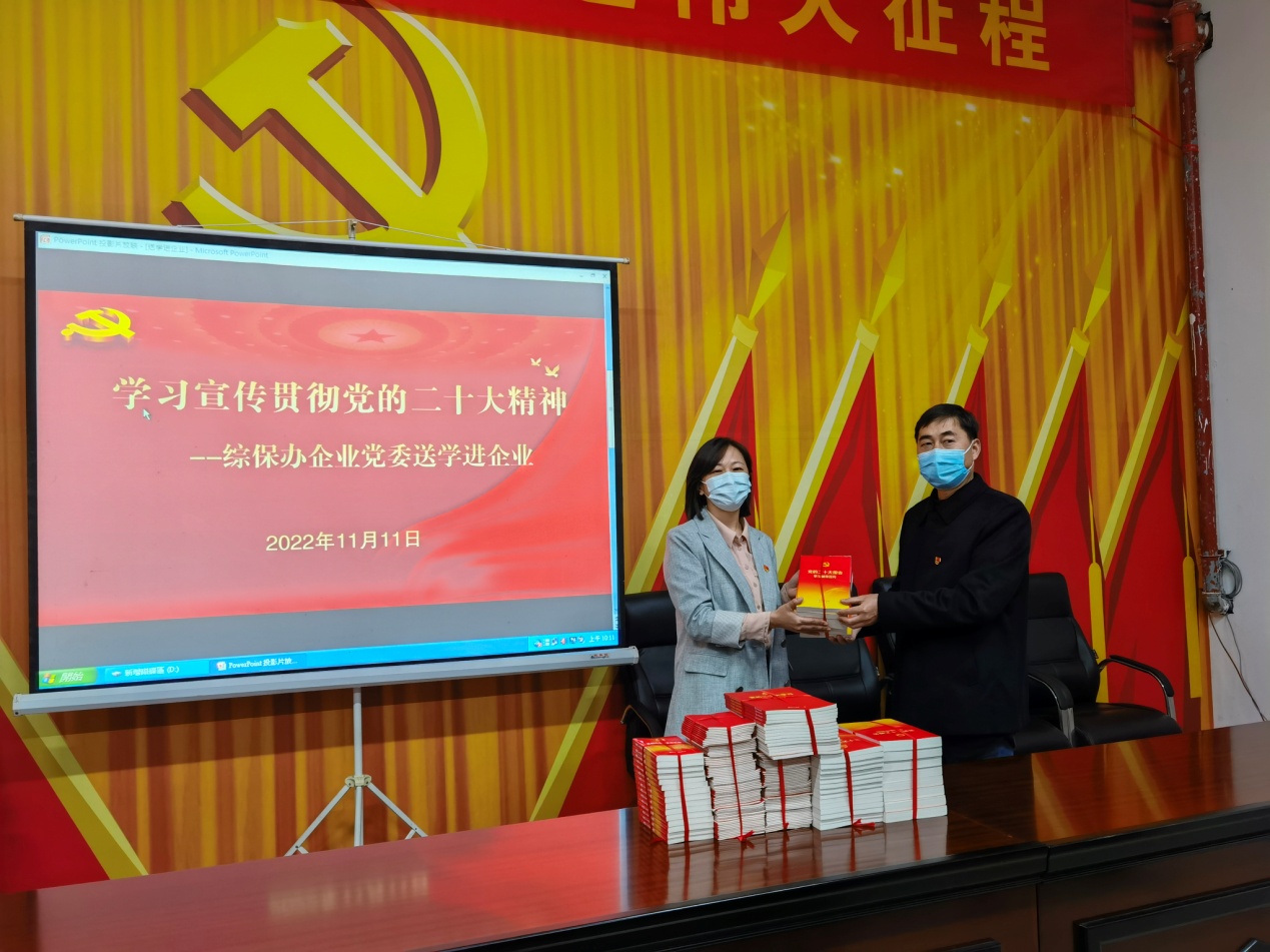 为深入学习宣传贯彻党的二十大精神,11月11日上午,淮安综合保税区管理办公室相关负责人园区企业富士康科技集团宣讲党的二十大精神,并向企业党委赠送党的二十大学习书籍。
