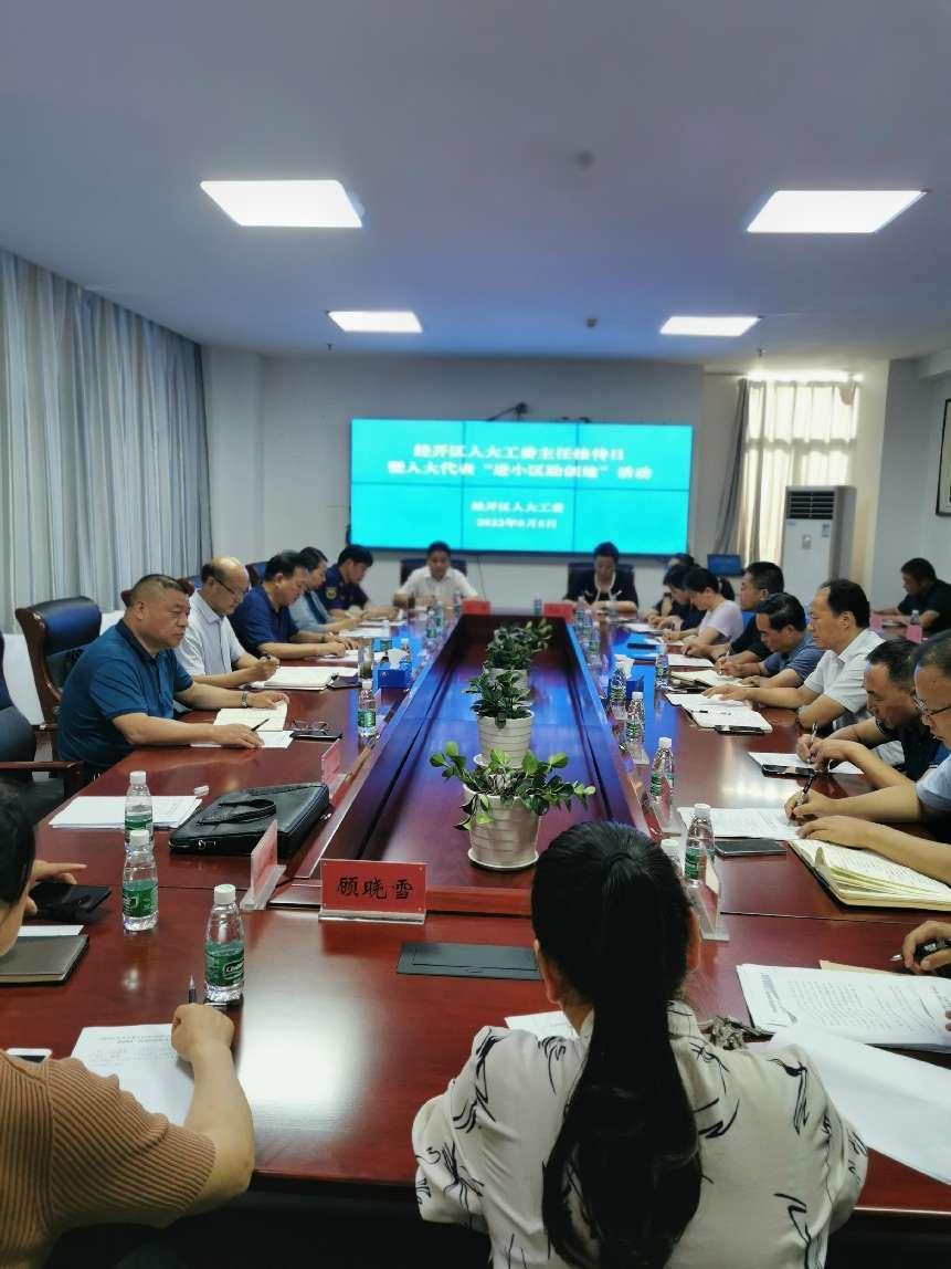 为贯彻落实淮安市人大常委会“惠民生 助发展”代表履职建功主题活动的部署要求,8月5日,经开区人大工委在钵池街道开展主任接待代表日暨人大代表“进小区 助创建”活动。区人大工委主任韩高峰,副主任马慧明出席活动。