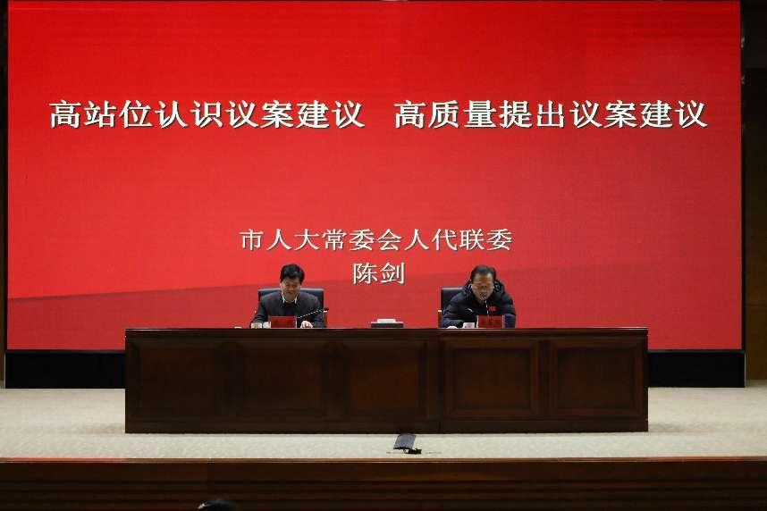 本次培训邀请了市人大常委会人代联委副主任、三级调研员陈剑为大家授课。培训会上,陈剑围绕高站位认识议案建议,高质量提出议案建议展开培训。针对如何选题、精准取材、写作规范等方面,结合生动详实的事例,展示了议案建议“上接天线,下接地平线”的特点,深入浅出地阐述了高质量撰写议案建议的技巧和注意事项。